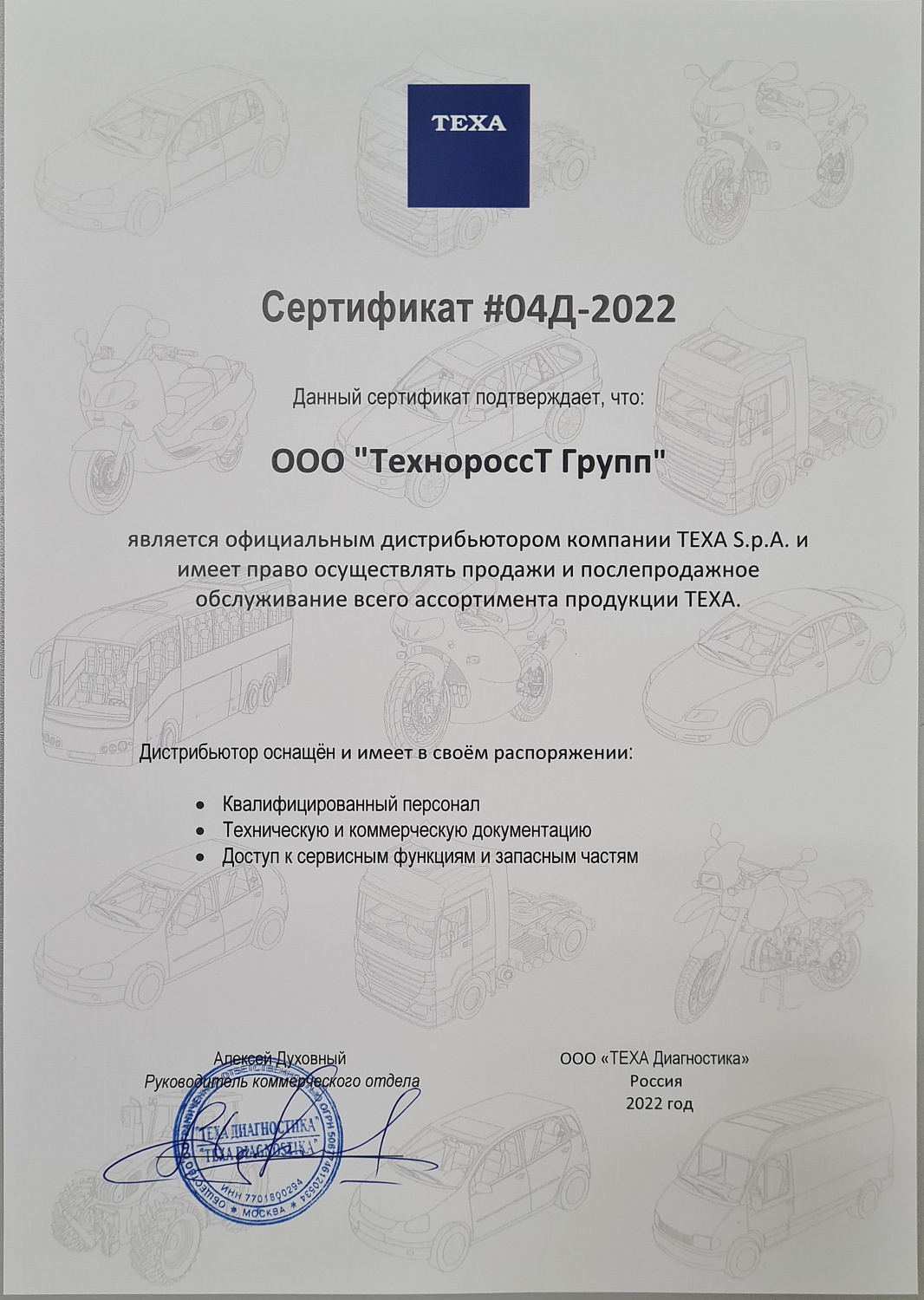 TEXA - лидер в разработке, создании и производстве продукции мультимарочных диагностических приборов, анализаторов выхлопов, заправочных установок для систем кондиционирования воздуха и теледиагностики, предназначенные для легковых, лёгких коммерческих, грузовых автомобилей, мотоциклов, квадрациклов, снегоходов, сельскохозяйственной, строительной и морской техники.